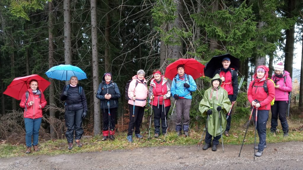 8.11. – 9.11. – Dwudniowa wędrówka pograniczem Czech i Słowacji, prowadził Tadeusz Farnik. Sobotę mieliśmy trochę deszczową i błotnistą, ale to nie przeszkadzało nam podziwiać jesienne ciągle jeszcze kolorowe choć mgliste pejzaże. Niedziela była już bez deszczu, względnie ciepło…