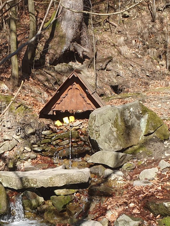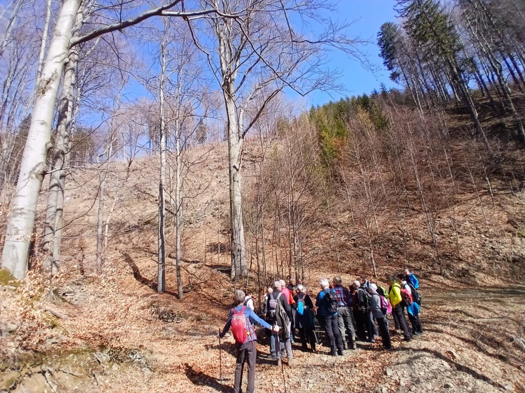 Pierwotnie szlak miał prowadzić nieoznakowanymi ścieżkami po zboczach Jaworowego. Jednak w ostatniej chwili nasza przewodniczka, pani Eva Haltofová — inicjatorka i duch sprawczy miejscowego stowarzyszenia „Občanské sdružení Tyra” (tyra.cz) — obawiając się lodu na leśnych ścieżkach, zdecydowała się zmienić plan wycieczki. Do zanikłej osady u Lodra, którą niegdyś tworzyły trzy domy, a dziś pozostały jedynie fundamenty jednej piwnicy, podeszliśmy więc od strony głównej drogi. Drugim przystankiem był tzw. „kamień celtycki”… Podczas wędrówki nasza przewodniczka dzieliła się wieloma ciekawostkami o Tyrze i jej mieszkańcach — między innymi opowiadała o źródełku „Bolibrzuszka”…
