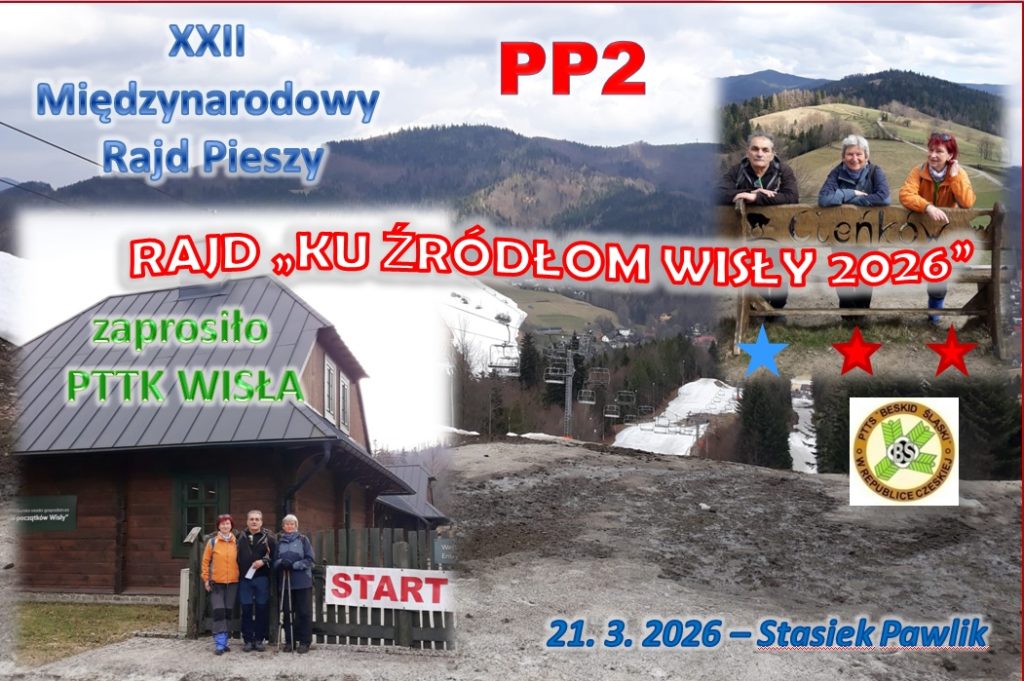 21.3.2026 – Tych, którzy nie wyjeżdżają na dwudniowy rajd na Pogórze Hostyńsko-Wsetyńskie, zachęcamy mocno do skorzystania z zaproszenia PTTK Wisła i wzięcia udziału w tradycyjnym rajdzie „Ku źródłom Wisły”, którego organizatorami są PTTK Oddział Wisła oraz Urząd Miejski w Wiśle. Tym razem trasy rajdu zmierzają do Chaty Watra położonej w Wiśle ul. Biała Wisełka 22J.