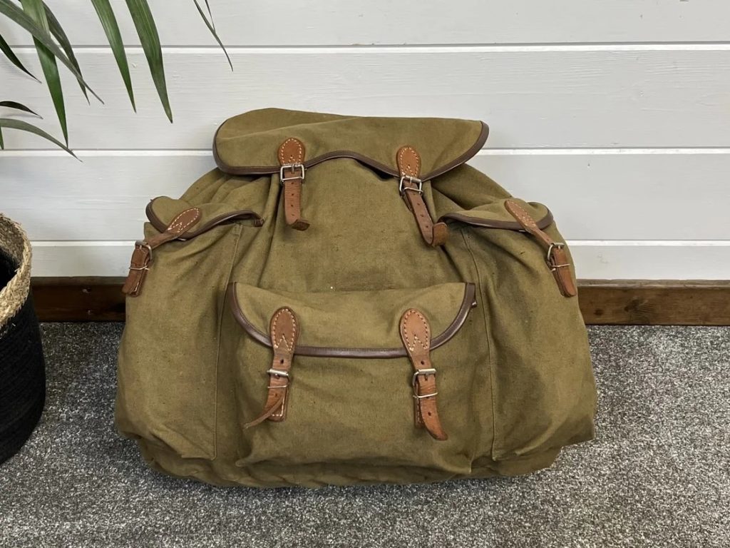 - stare płócienne plecaki z metalowymi stelażami